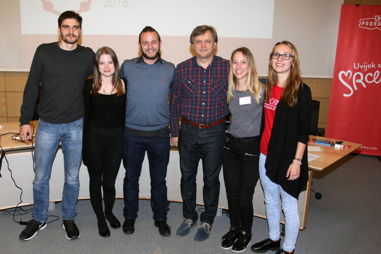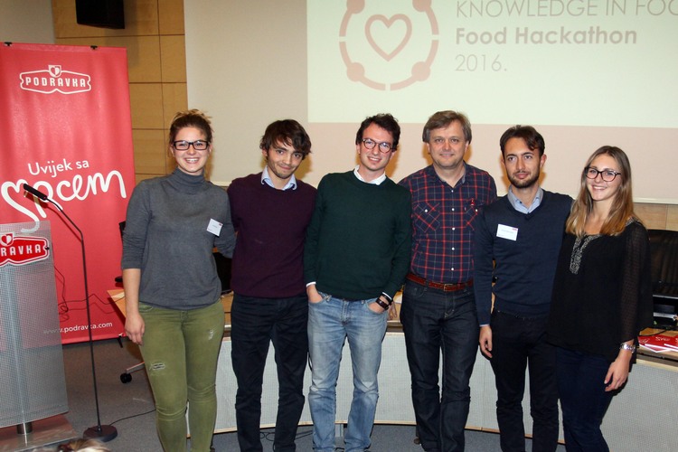 Expert jury consisting of representatives of Podravka and Hackathon partners selected the winners in three categories. In the category of food future/cool food the winner is the team „Food Scientists“ (Ana Carolina Maia Candotti, Rita Aguilar, Lucija Bušić, Sven Krechtl, Darian Hrvoje Zec), who connected food and learning of science through game. Team „PodrAPPka“ (Aldo Topić, Aleksandra Zelder, Elena Mikolaj, Andreja Poljanec, Reslav Hollós) were the best in the category of food and technology /internet of food developing the idea of purchasing products under certain price terms via online shopping. Category of food and sustainable development /sustainable food ecosystem was best presented by the team „HraniTeam“ (Lucija Boras, Mateja Kobeščak, Giuseppe Cicchetti, Viktor Tarroni, Andrea Maruzzella) with an imaginative idea of how to prevent food vasting. Special reward by the public went to the team „Foodology“ (Marko Božac, Tomislav Bradač, Petar Šegina, Bojana Brnica, Lucija Galić ) who competed in the category of internet of food.