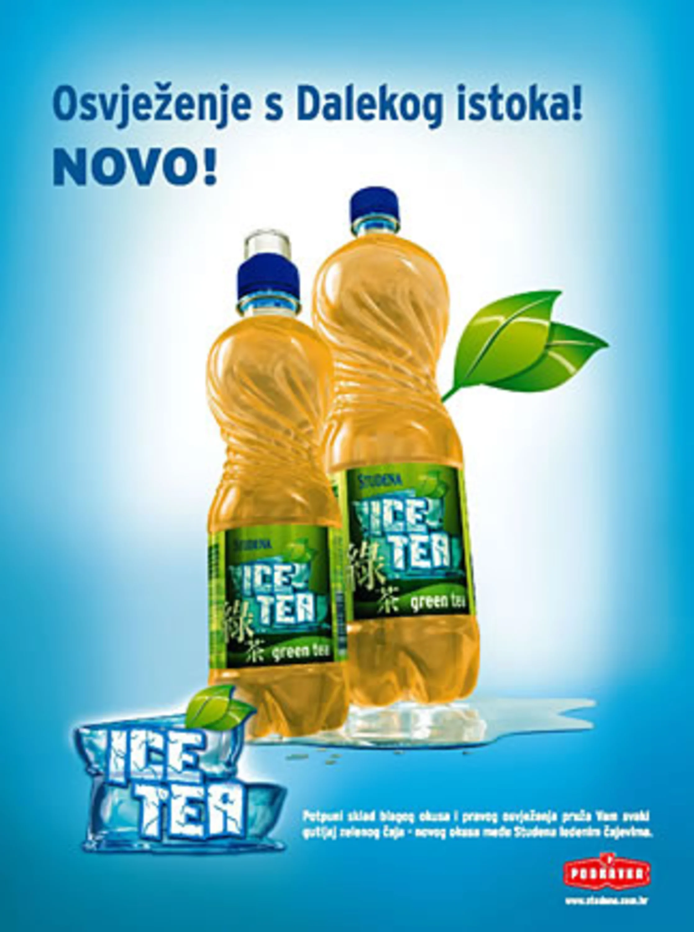 A new flavour, Studena Ice Tea – Green Tea, has been introduced into the product range of the Studena Ice Tea brand. The product will be available on the market from 4.06.2007 in four types of packaging: 0.25 litre glass returnable bottles, 0.25 litre glass one way bottles, 0.5 litre PET bottles and 1.5 litre PET bottles.